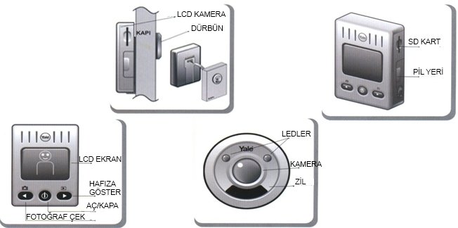 Yale Kapı Kamerası 2 parçadan oluşmaktadır. Takılan hafıza kartı sayesinde çekilen fotoğraflar kayıt altında tutulur. Kolay Kurulum. Ambalaj içinde gelen uzun ömürlü şar edilebilir pil ve Hafıza Kartı.